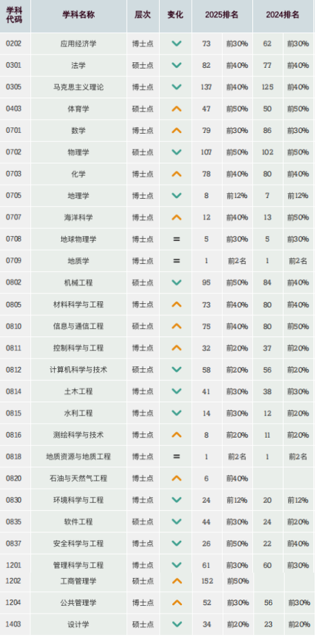 其中,地质学、地质资源与地质工程继续排名全国第1,地球物理学排全国第5,石油与天然气工程排全国第6,地理学排全国第8。