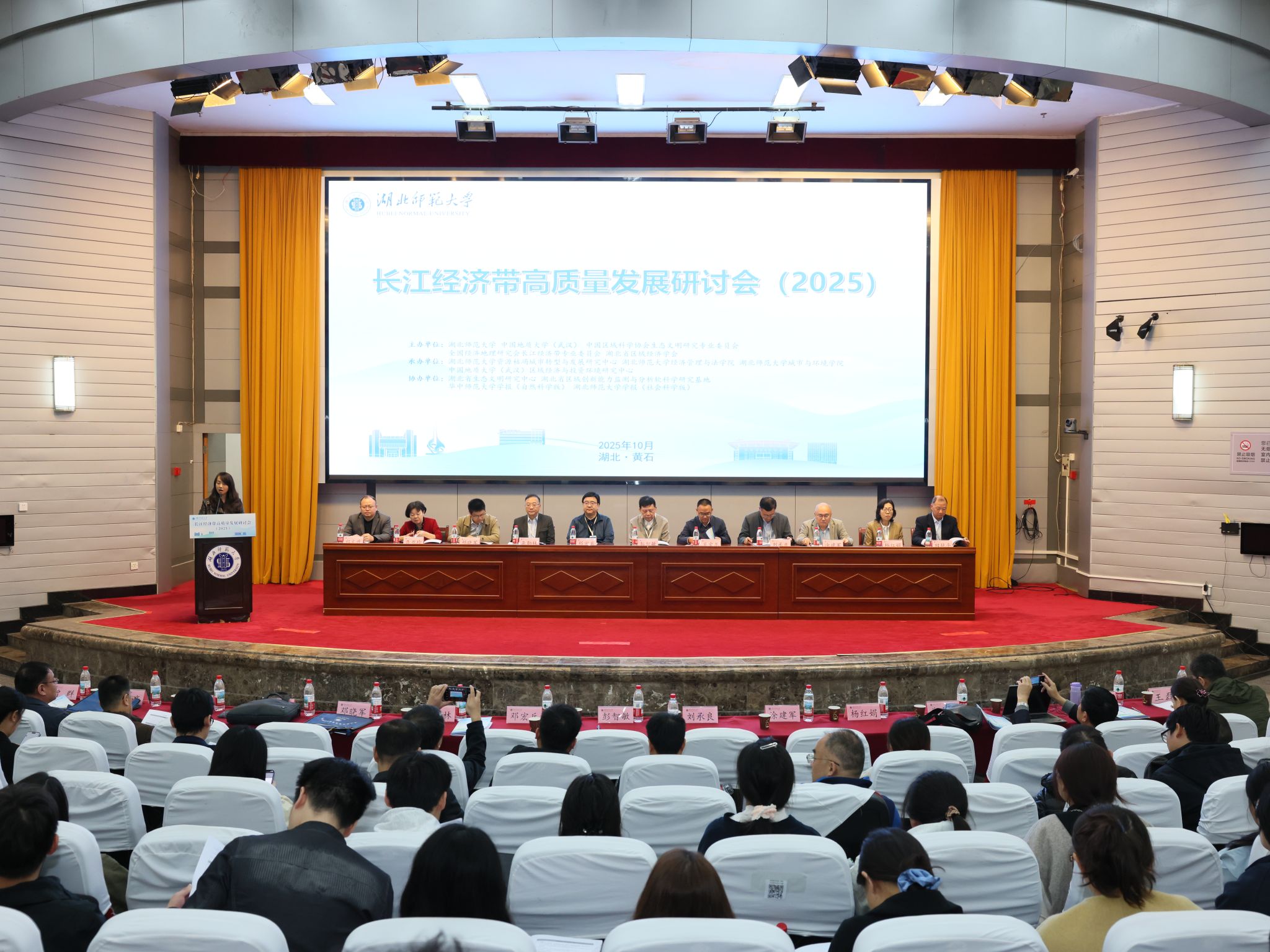 地大新闻网讯(通讯员 徐熙萍 黄珂)10月24日至26日,长江经济带高质量发展研讨会(2025)在湖北师范大学举行。本次会议由湖北师范大学、我校、中国区域科学协会生态文明研究专业委员会、全国经济地理研究会长江经济带专业委员会、湖北省区域经济学会主办。来自我校、华中科技大学、四川大学、昆明理工大学、华东师范大学、西南大学、中南财经政法大学、湖北省社科院、湖北师范大学等30余所高校和科研院所的两百余名代表参加了会议。研讨会聚焦“十五五”中部崛起重要战略支点建设与长江经济带高质量发展展开了深入研讨。开幕式由湖北师范大学经济管理与法学院院长沈燕主持。