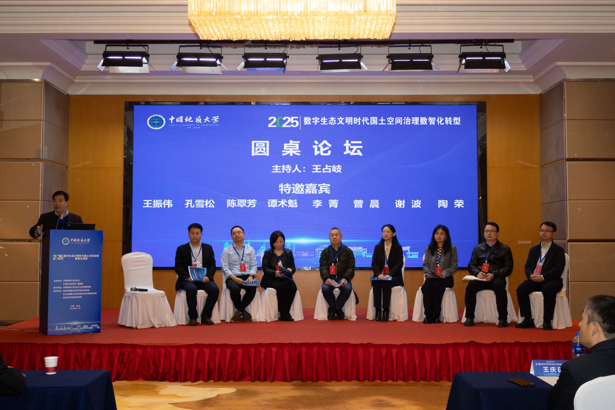 圆桌论坛由我校王占岐教授主持。十余位专家学者围绕数智化如何助力国土空间治理效能提升进行讨论。王占岐表示,数智化转型必须守住生态底线,并寄语青年学子投身数字生态文明实践。