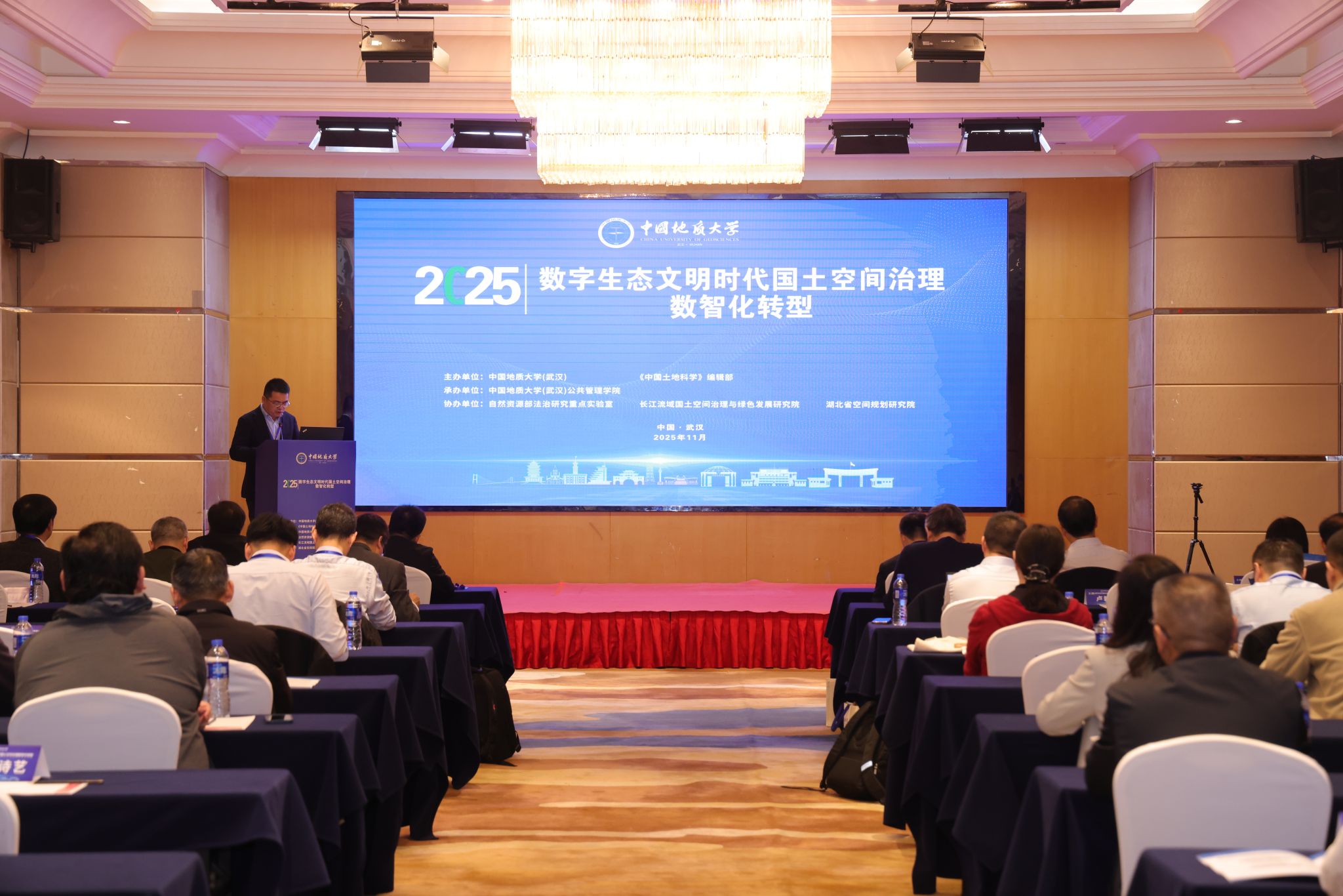 副校长胡守庚参加开幕式并致辞。他表示,数智化转型是推进国土空间治理体系和治理能力现代化的重要路径,有助于实现资源节约、绿色低碳与高效治理。他表示,学校将持续搭建高质量学术交流平台,推动科研成果服务国家战略。