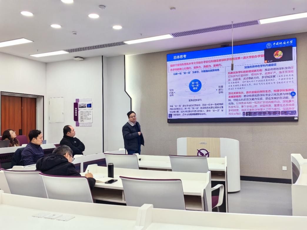高复阳立足学校发展战略,结合国内外学科发展趋势,围绕“十五五”规划编制要求、学科核心指标与资源配置优化等关键内容,对相关政策进行了深入解读,为学科定位与特色发展提供了清晰指引。