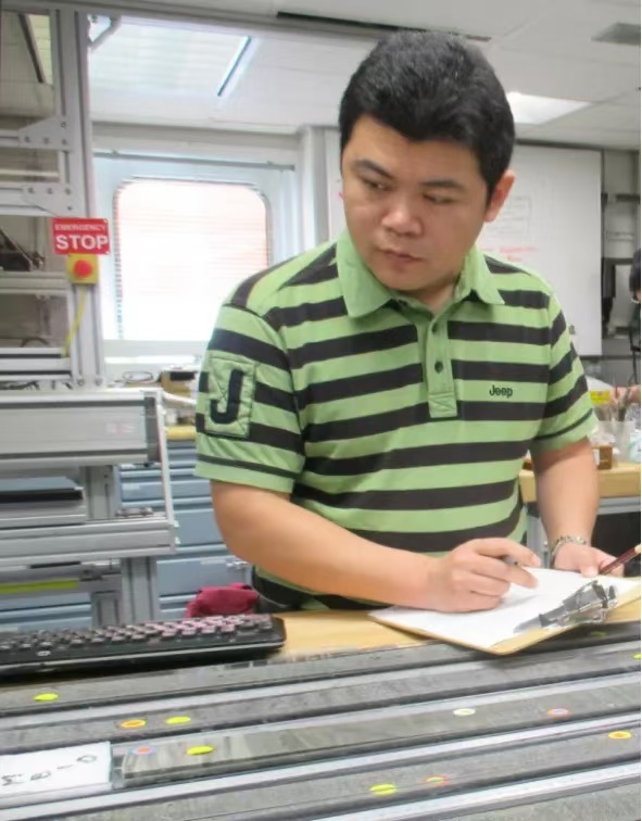 (宁伏龙教授参加大洋钻探船海试,在岩心转运系统现场工作)