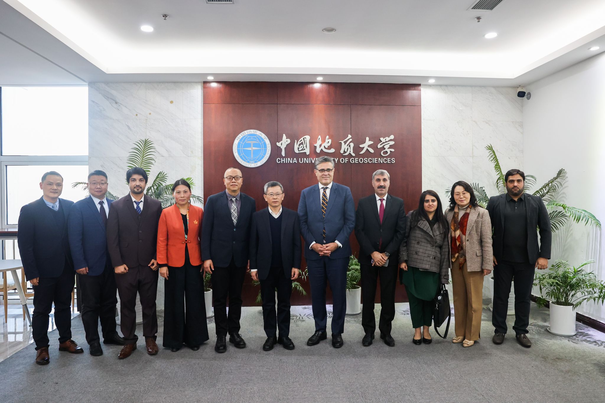 我校校长李建威对卡里尔·哈什米一行的到访表示欢迎。他简要回顾了我校与巴基斯坦的合作历程,介绍了双方在地球科学等领域取得的成果。“截至目前,地大已培养340余名巴基斯坦学生,他们成为两国科技文化交流的桥梁。”李建威表示,我校将全力支持相关学科领域共建中巴联合实验室,并拓展气候变化、数字经济等新兴领域的合作。