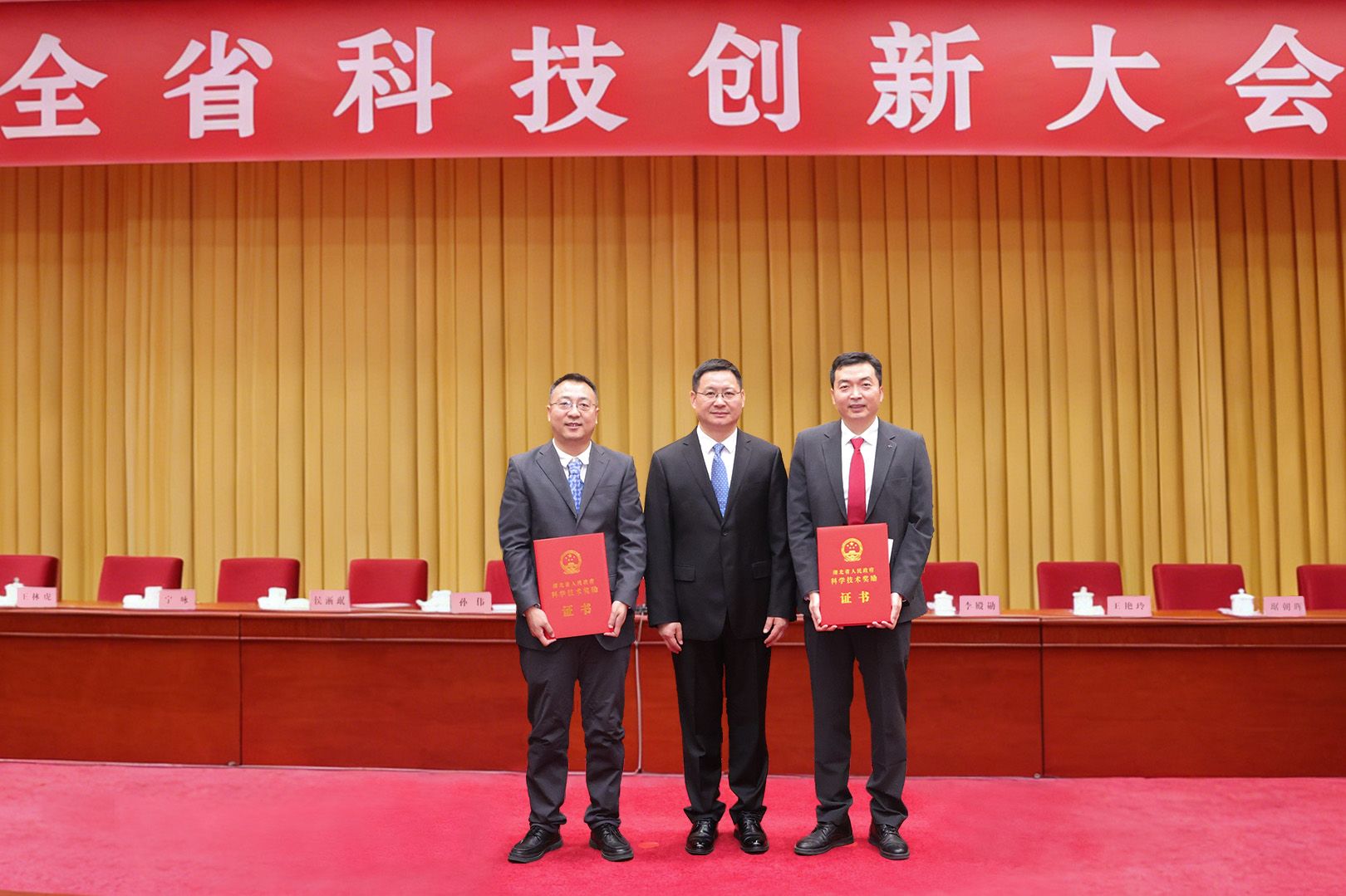 地大新闻网讯 (通讯员 殷茵 摄影 焦思勤)1月4日上午,湖北省科技创新大会召开,公布了《湖北省人民政府关于2025年度湖北省科学技术奖励的决定》。我校靳洪允教授荣获青年科技创新奖,宋海军教授团队荣获自然科学奖一等奖,我校牵头项目荣获一等奖1项、二等奖2项、三等奖4项。校党委书记刘杰和获奖教师代表参会。