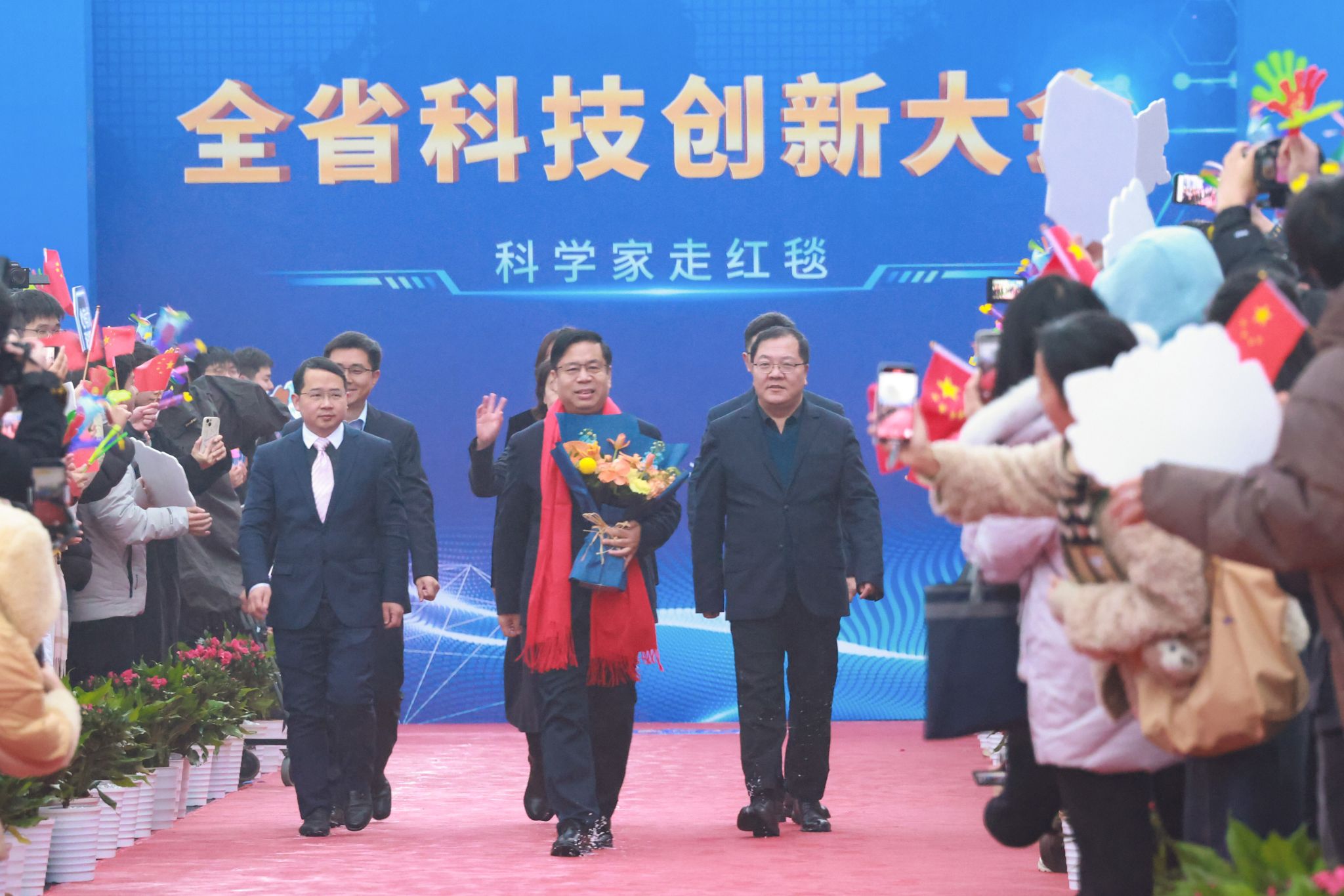 今年,湖北省继续为科技工作者铺就“星光大道”。我校唐辉明院士带领团队成员与湖北省其他11位科学家一道走上百米红毯。