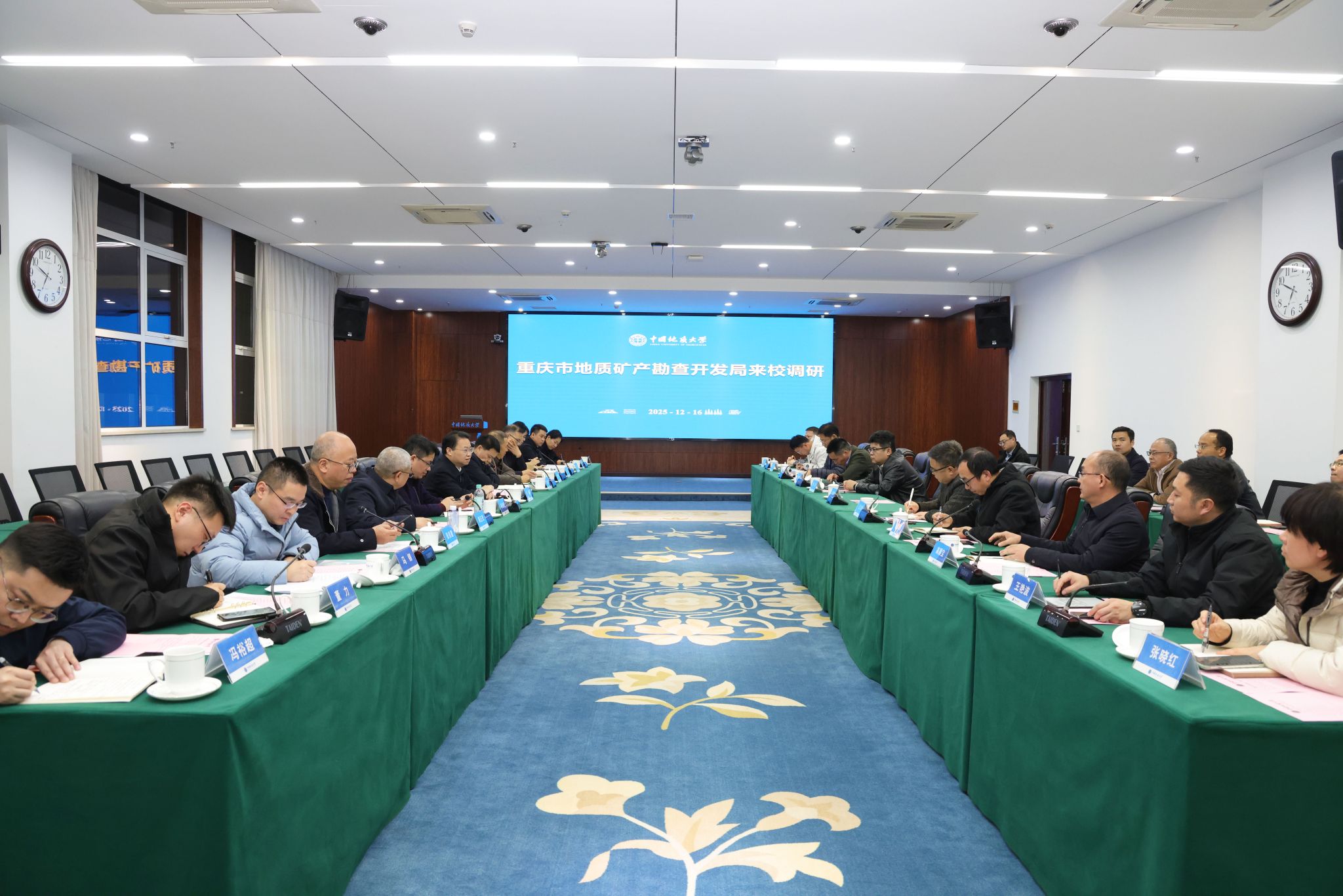 地大新闻网讯 (通讯员 宁蒙 摄影 孙彦钦 常宇涵)12月16日,重庆市地质矿产勘查开发局党委书记、局长周波带队来校调研,我校党委常委、副校长王力哲及相关部门负责人参加座谈会。