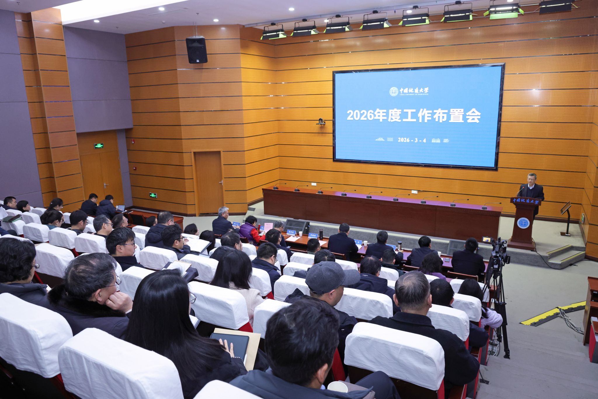 校长李建威回顾了2025年的工作,分析了学校当前发展面临的形势任务,并部署2026年各项重点工作:一是强化政治引领,全面加强党的建设。要坚持和加强党的全面领导,提升基层党建工作质效,建强高素质专业化干部队伍,纵深推进全面从严治党;二是强化战略引领,高质量完成“十五五”规划编制。要全面总结“十四五”发展经验、系统梳理短板不足、科学分析问题根源,做好“十五五”规划编制并启动实施;三是强化思想铸魂,全面实施立德树人“一号工程”。要推进思政课教学和课程思政提质增效,擦亮实践育人特色品牌,促进学生身心健康、全面发展;四是强化协同配合,完善拔尖创新人才培养模式。要着力提升教育教学创新能力和人才培养质量,扎实推进研究生分类培养,完善招生培养就业联动机制,构建高水平国际化办学新格局;五是强化优势特色,持续优化学科专业布局。要高质量推进“双一流”建设,加快新兴学科和急需学科布局建设,不断完善学科专业优化调整机制;六是强化需求导向,加快推进科技创新体系建设。要着力打造战略科技力量,不断完善科技成果转化机制,高质量推动社会合作;七是强化引育并举,打造新时代高素质教师队伍。要健全师德师风建设长效机制,深入实施教育能力提升行动,超常规引育高层次人才,完善多元教师评聘体系;八是强化基础保障,提升现代化治理水平。要有序推进校院两级管理改革,加快推进“数智地大”建设,提升资源汇聚与支撑保障能力。