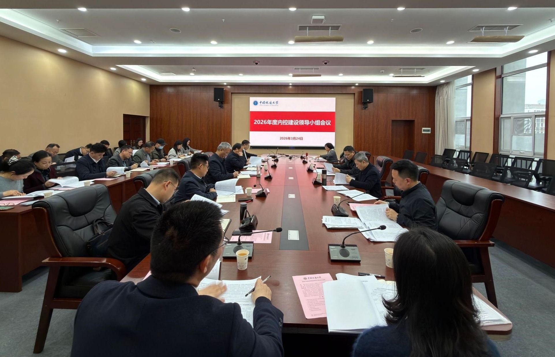 地大新闻网讯(通讯员 徐祝心)3月24日,我校2026年度内控建设领导小组会议在东区教学综合楼A701会议室召开。校党委书记刘杰、校长李建威、副校长胡守庚,我校内控领导小组成员单位主要负责人参加会议。胡守庚主持会议。