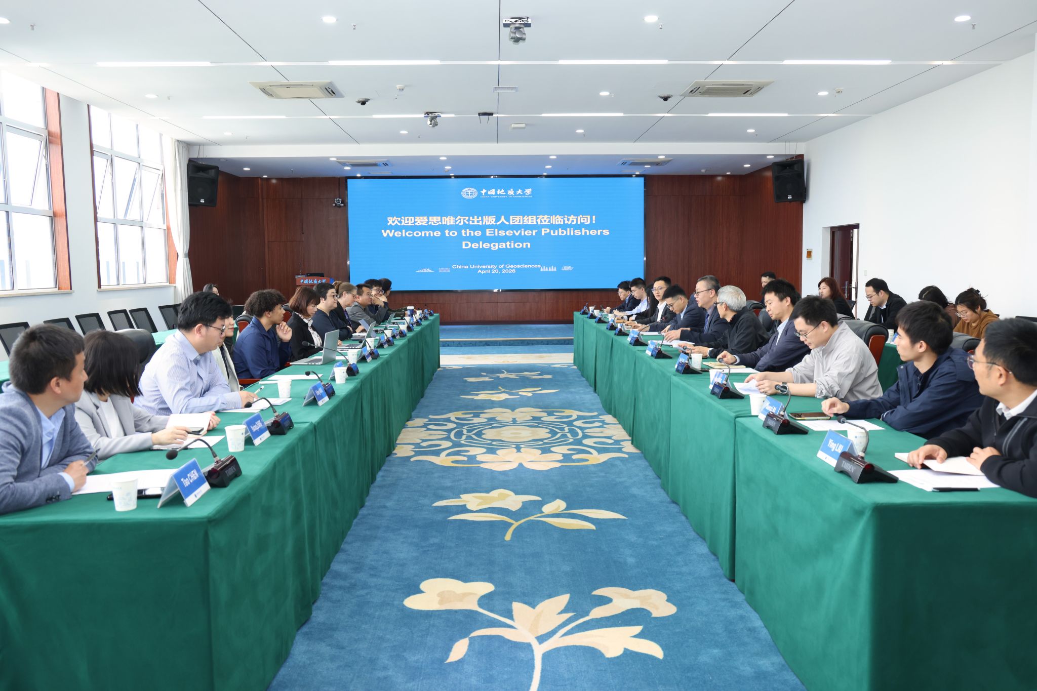 随后,国际合作处处长关庆锋主持圆桌会议。他介绍了我校的学科布局、科研进展与国际合作概况。目前学校有近200位学者在国际期刊担任编委,其中在爱思唯尔旗下期刊任职者众多。爱思唯尔团队重点分享了期刊发展理念与学术出版趋势。据悉,旗下目前管理着120余种地学高水平期刊,包括《地球与行星科学通讯》《地球科学评论》等国际重要学术期刊。双方一致认为,应充分发挥各自的平台与人才优势,在编委推荐、专题策划、青年学者培训等方面建立长效合作机制。