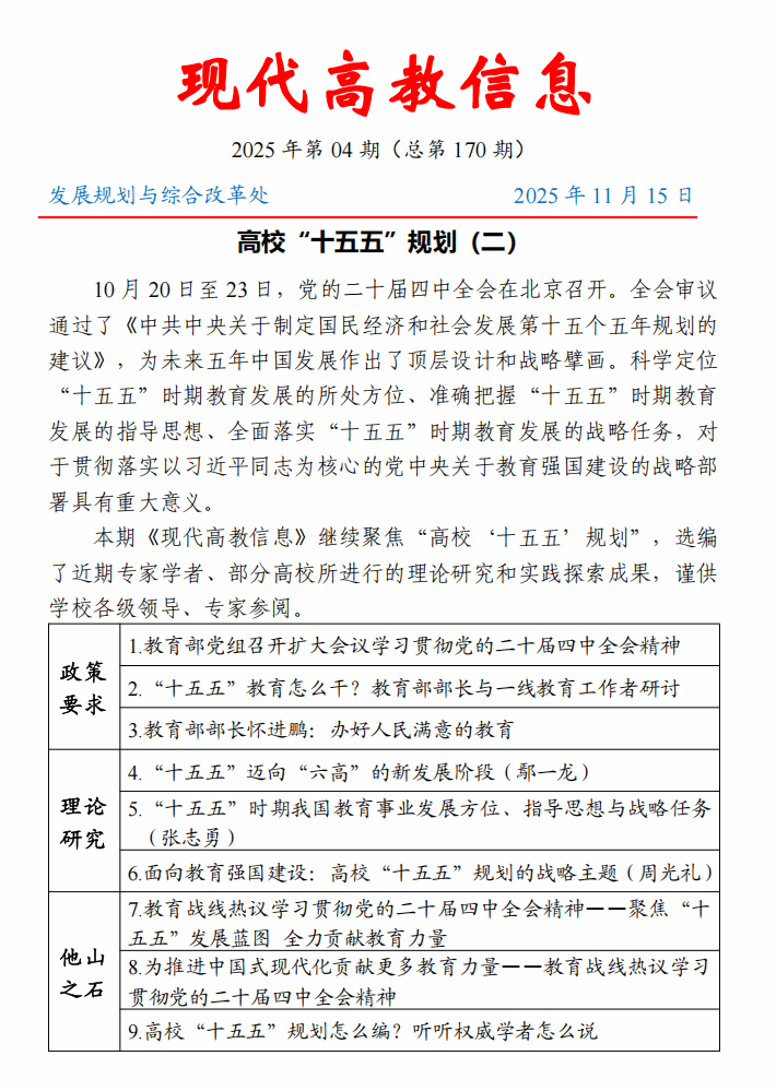 第170期(高校“十五五”规划(二)专题)